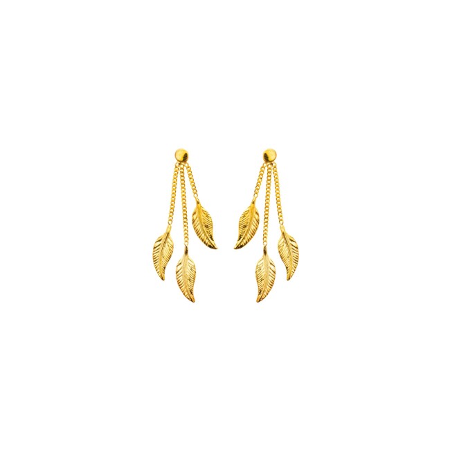 Boucles d'oreilles Maison Ballet by Scarlett pendantes 3 petites plumes en or jaune