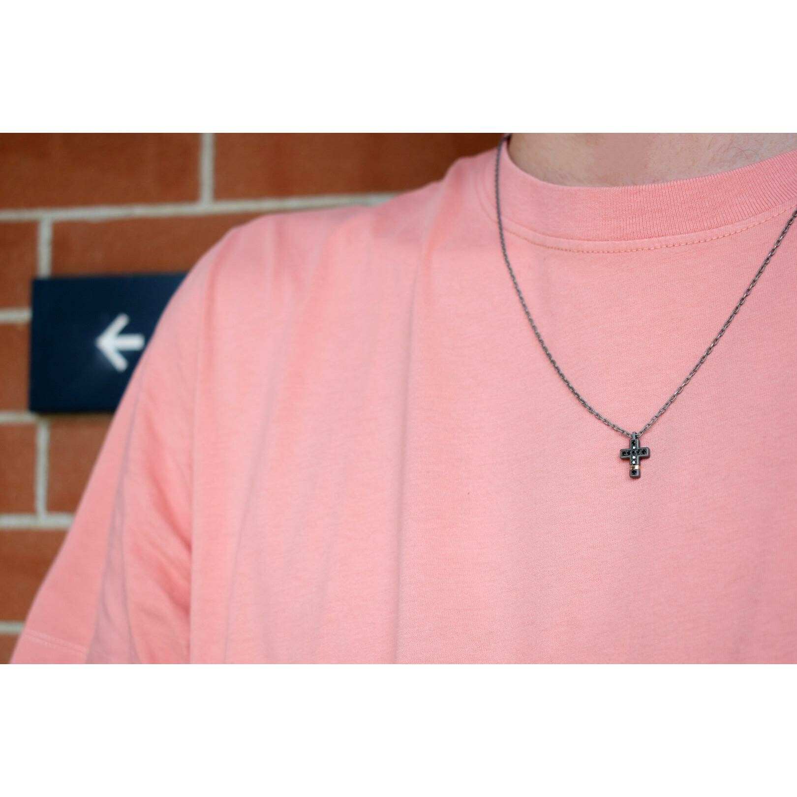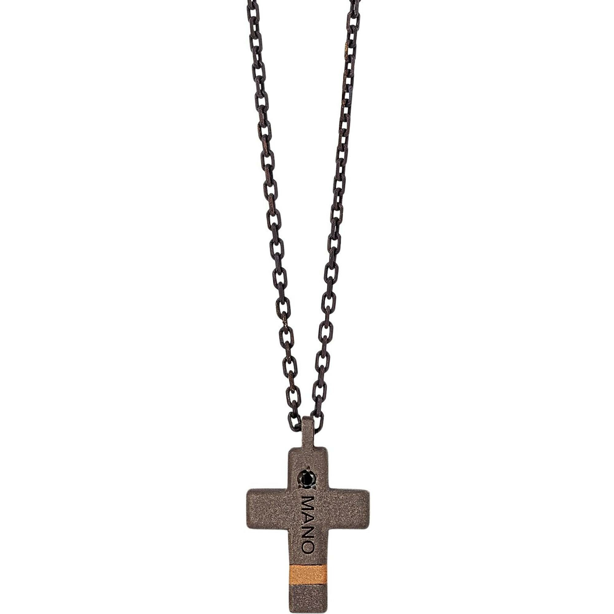 Collier petite Croix Mano J en titane, or rouge et diamants noirs